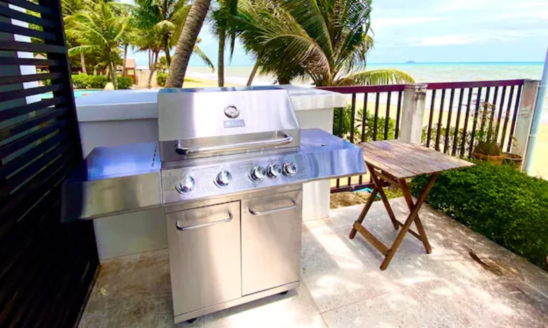 坐落在海滩上的豪华4居室别墅,设有私人游泳池,面向迷人的Koh Samet和Koh Kam群岛。距离曼谷苏凡纳布机场 (BKK)只有两个半小时的车程,距离乌塔堡机场 (UTP) 只有一个小时的车程。这栋别墅有4间卧室和3间浴室。此外,它还配备了一个可供休闲的海滩露台。露台配有一个烧烤架,可供您烹饪您最喜欢的食物。